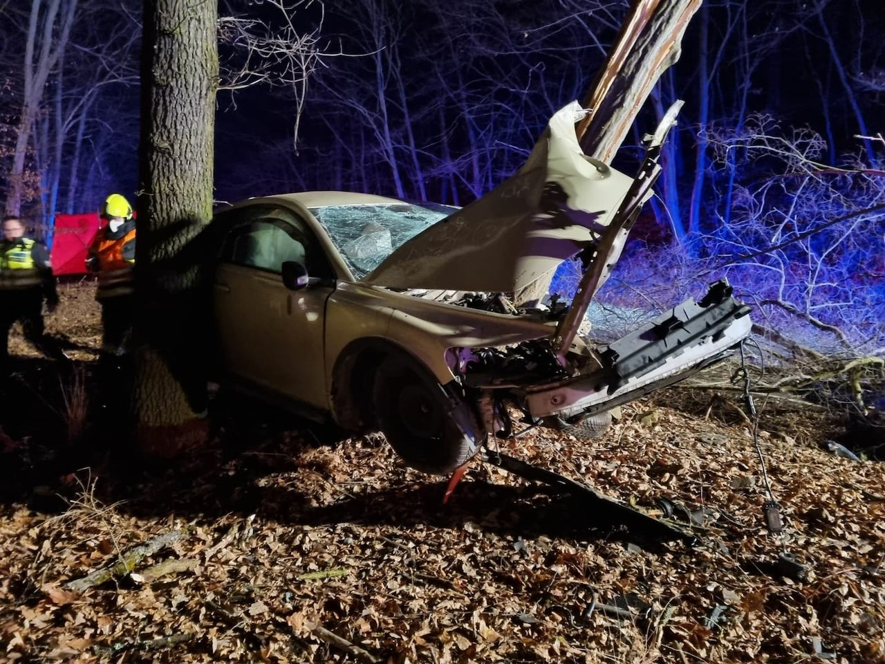 Řidič narazil u Černolic na Praze Západ do stromu. Na místě zemřel