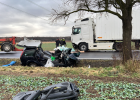 Na Kolínsku u obce Pňov zemřeli při dopravní nehodě dva lidé. Řidič Fordu zatím z neznámých přičin vyjel do protisměru a střetl se s projíždějícím kamionem. Záchranáři do nemocnice transportovali nezletilé dítě z havarovaného z kamionu.© Aktu.cz Střet motorky s osobákem, jehož posádka od nehody utekla